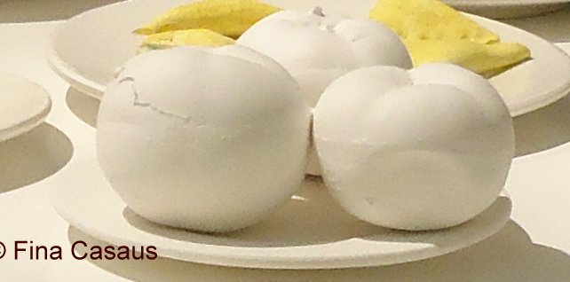 Un gran àpat es va realitzar amb els diferents processos tècnics portats a terme  a l’activitat proposada. Els plats, els bols i les plates plenes de diferents tipus de menjar. Les sardines blaves, les anxoves i els calamars establien un diàleg constant amb les granades, les llimones com també amb les maduixes i les pomes. Els pastissos de diferents formes competien en bellesa amb els petits makis japonesos. Les natures mortes de color blanc realitzades amb la tècnica de colatge, desprenien la seva gamma de color invitant a dibuixar-les al paper o a decorar-les amb pigments ceràmics.
